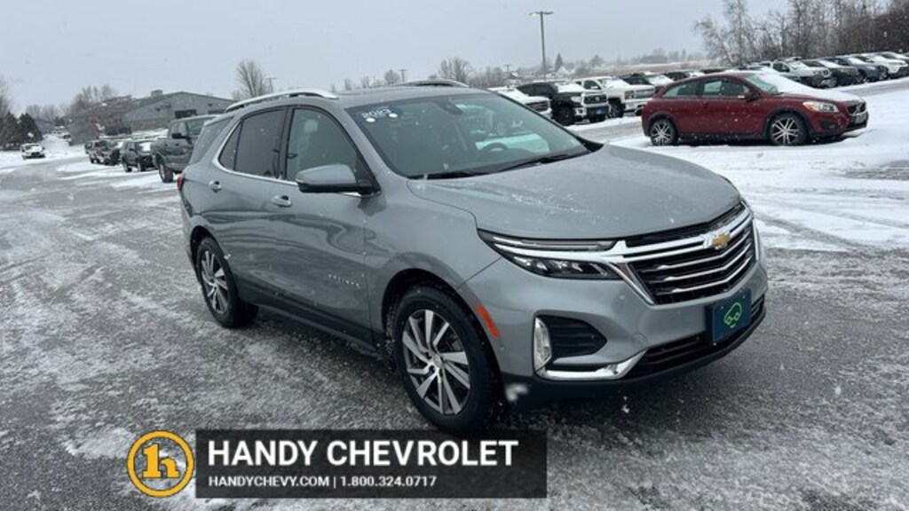 Recent Arrival!Here at HANDY CHEVROLET, it is our mission to be the automotive home of drivers in the Saint Albans, Burlington, and Franklin County area. We have been a family owned and operated dealership for 50+ years serving our community. We provide a vast selection of new and used vehicles, exceptional car care and customer service with a smile!Our staff at Handy Chevrolet of St. Albans, VT makes every effort to keep all information accurate and up to date. Contact a product specialist on our Sales team to inquire about availability. Contact us as soon as possible at 802 524 9737 to schedule the test drive of your next new or pre-owned vehicle!KEY POLICY: HANDY CHEVY PRE-OWNED VEHICLES COME STANDARD WITH ONE KEY. IF WE RECEIVED MORE THAN ONE KEY FROM THE PREVIOUS OWNER, WE INCLUDE THEM.Odometer is 5553 miles below market average!Clean CARFAX. CARFAX One-Owner.AWD.Certified. Sterling Gray Metallic 2023 Chevrolet Equinox Premier 4D Sport Utility AWD 6-Speed Automatic Electronic with Overdrive 1.5L DOHC 24/30 City/Highway MPGChevrolet Certified Pre-Owned Details:* Powertrain Limited Warranty: 72 Month/100,000 Mile (whichever comes first) from original in-service date* 172 Point Inspection* Vehicle History* 24 months/24,000 miles (whichever comes first) Certified Pre-Owned Scheduled Maintenance Plan and 3 days/150 miles (whichever comes first) Vehicle Exchange Program. SiriusXM 3-month trial subscription.* Warranty Deductible: $0* Transferable Warranty* Limited Warranty: 12 Month/12,000 Mile (whichever comes first) from certified purchase date* Roadside AssistanceHandy Chevrolet is proud to present you with another True Market Priced Pre-Owned Vehicle. Transparent Pricing Of $ 25909 !! This 2023 Chevrolet Equinox Premier Chevrolet Certified Pre-Owned is loaded with the following Factory Options: AWD Confidence & Convenience II Package, Driver Confidence III Package (Adaptive Cruise Control, Automatic Front & Rear Parking Assist, and HD Surround Vision), Driver Convenience II Package (Front Passenger 8-Way Power Seat Adjuster, Heated Rear Outboard Seating Positions, Ventilated Driver Seat, and Ventilated Front Passenger Seat), Infotainment II Package (2 Rear USB Charging-Only Ports, Bluetooth® For Phone, Bose Premium 7-Speaker Audio System Feature, Radio: Chevrolet Infotainment 3 Plus System w/Navi, and SiriusXM Radio), Preferred Equipment Group 1LZ, Chevrolet Certified Pre-Owned Certified, AWD, 18 Aluminum Wheels, 2-Way Power Driver Lumbar Control Seat Adjuster, 3.87 Final Drive Axle Ratio, 4-Wheel Disc Brakes, 6 Speakers, 6-Speaker Audio System Feature, ABS brakes, Air Conditioning, Alloy wheels, AM/FM radio: SiriusXM, Auto High-beam Headlights, Auto-dimming door mirrors, Auto-dimming Rear-View mirror, Automatic temperature control, Brake assist, Bumpers: body-color, Compass, Custom Molded Front & Rear Splash Guards (LPO), Delay-off headlights, Driver 8-Way Power Seat Adjuster, Driver door bin, Driver vanity mirror, Dual front impact airbags, Dual front side impact airbags, Electronic Stability Control, Emergency communication system: OnStar and Chevrolet connected services capable, Four wheel independent suspension, Front anti-roll bar, Front Bucket Seats, Front Center Armrest, Front dual zone A/C, Front fog lights, Front Passenger 4-Way Manual Seat Adjuster, Front reading lights, Fully automatic headlights, Garage door transmitter, Heated door mirrors, Heated Driver & Front Passenger Seats, Heated front seats, Heated steering wheel, Illuminated entry, Low tire pressure warning, Memory seat, Occupant sensing airbag, Outside temperature display, Overhead airbag, Overhead console, Panic alarm, Passenger door bin, Passenger vanity mirror, Perforated Leather-Appointed Seat Trim, Power door mirrors, Power driver seat, Power Liftgate, Power steering, Power Sunroof, Power windows, Premium audio system: Chevrole