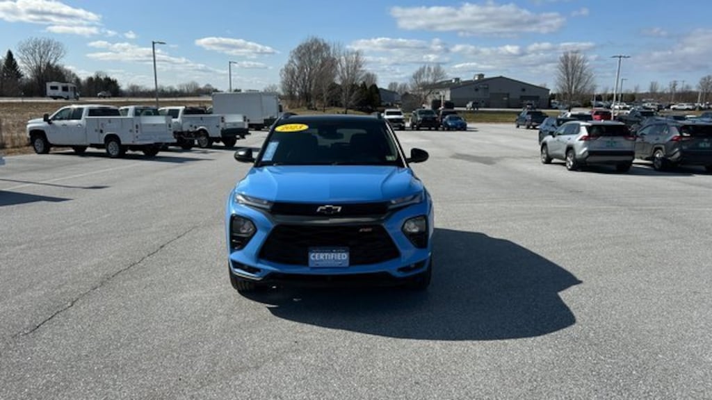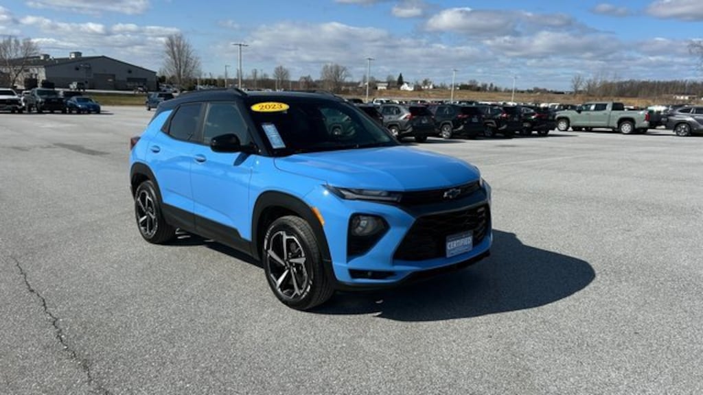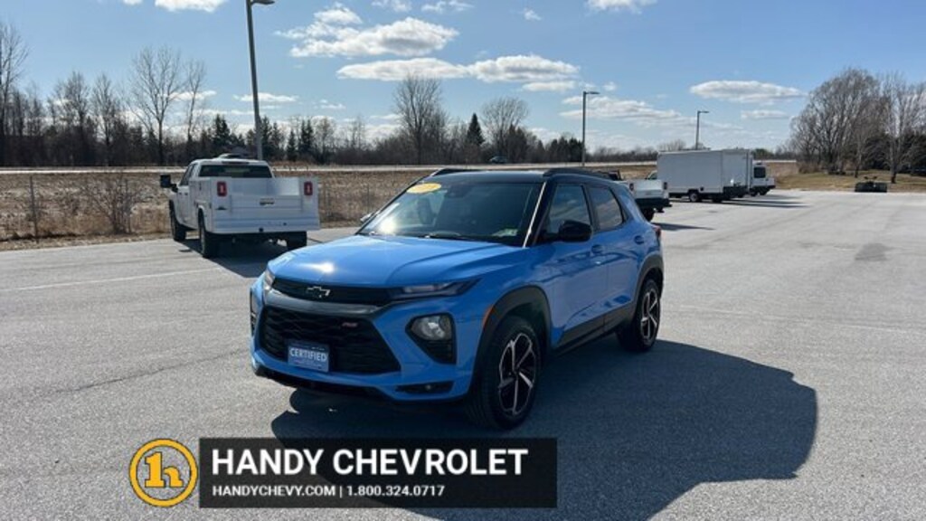 Here at HANDY CHEVROLET, it is our mission to be the automotive home of drivers in the Saint Albans, Burlington, and Franklin County area. We have been a family owned and operated dealership for 50+ years serving our community. We provide a vast selection of new and used vehicles, exceptional car care and customer service with a smile!Our staff at Handy Chevrolet of St. Albans, VT makes every effort to keep all information accurate and up to date. Contact a product specialist on our Sales team to inquire about availability. Contact us as soon as possible at 802 524 9737 to schedule the test drive of your next new or pre-owned vehicle!KEY POLICY: HANDY CHEVY PRE-OWNED VEHICLES COME STANDARD WITH ONE KEY. IF WE RECEIVED MORE THAN ONE KEY FROM THE PREVIOUS OWNER, WE INCLUDE THEM.Clean CARFAX. CARFAX One-Owner.1 Type-A & 1 Type-C USB Charging-Only Ports, 120-Volt Power Outlet, 8 Diagonal Color Touchscreen Display, Convenience Package, Driver & Front Passenger Illuminated Vanity Mirrors, Inside Rear-View Auto-Dimming Mirror, Single-Zone Auto Climate Control Air Conditioning.Certified. Fountain Blue 2023 Chevrolet TrailBlazer RS 4D Sport Utility AWD 9-Speed Automatic 1.3L Ecotec Turbo DOHC SIDI w/VVT 26/30 City/Highway MPGChevrolet Certified Pre-Owned Details:* 172 Point Inspection* 24 months/24,000 miles (whichever comes first) Certified Pre-Owned Scheduled Maintenance Plan and 3 days/150 miles (whichever comes first) Vehicle Exchange Program. SiriusXM 3-month trial subscription.* Transferable Warranty* Vehicle History* Roadside Assistance* Limited Warranty: 12 Month/12,000 Mile (whichever comes first) from certified purchase date* Warranty Deductible: $0* Powertrain Limited Warranty: 72 Month/100,000 Mile (whichever comes first) from original in-service dateHandy Chevrolet is proud to present you with another True Market Priced Pre-Owned Vehicle. Transparent Pricing Of $ 21905 !! This 2023 Chevrolet TrailBlazer RS Chevrolet Certified Pre-Owned is loaded with the following Factory Options: Convenience Package (1 Type-A & 1 Type-C USB Charging-Only Ports, 120-Volt Power Outlet, 8 Diagonal Color Touchscreen Display, Driver & Front Passenger Illuminated Vanity Mirrors, Inside Rear-View Auto-Dimming Mirror, and Single-Zone Auto Climate Control Air Conditioning) Convenience Package (1 Type-A & 1 Type-C USB Charging-Only Ports, 120-Volt Power Outlet, 8 Diagonal Color Touchscreen Display, Driver & Front Passenger Illuminated Vanity Mirrors, Inside Rear-View Auto-Dimming Mirror, Single-Zone Auto Climate Control Air Conditioning, and Cabin Humidity Sensor), Confidence II Package (Rear Park Assist), Preferred Equipment Group 1RS (Heated Steering Wheel), Chevrolet Certified Pre-Owned Certified, 2-Way Adjustable Front Head Restraints, 2-Way Power Driver Lumbar Seat Adjuster, 3.17 Axle Ratio, 4-Way Manual Front Passenger Seat Adjuster, 4-Wheel Disc Brakes, 6 Speakers, 6-Speaker Audio System Feature w/Amplifier, 7 Diagonal Color Touchscreen, 8-Way Power Driver Seat Adjuster, ABS brakes, Air Conditioning, Alloy wheels, AM/FM radio: SiriusXM, Auto High-beam Headlights, Brake assist, Bumpers: body-color, Cloth w/Leatherette Seat Trim, Compass, Delay-off headlights, Driver door bin, Driver vanity mirror, Dual front impact airbags, Dual front side impact airbags, Electronic Stability Control, Emergency communication system: OnStar and Chevrolet connected services capable, Exterior Parking Camera Rear, Flat-Folding Front Passenger Seatback, Front anti-roll bar, Front Bucket Seats, Front Center Armrest, Front fog lights, Front License Plate Bracket, Front reading lights, Front wheel independent suspension, Fully automatic headlights, Heated door mirrors, Heated Driver & Front Passenger Seats, Heated front seats, Heated steering wheel, Illuminated entry, Knee airbag, Leather Shift Knob, Leather steering wheel, Low tire pressure warning, Mo