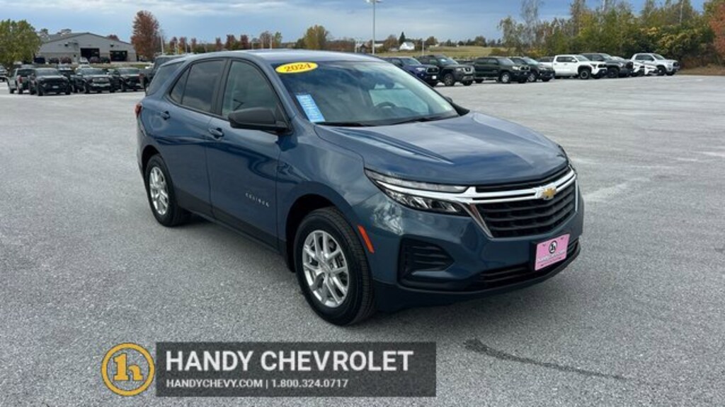 Recent Arrival!Here at HANDY CHEVROLET, it is our mission to be the automotive home of drivers in the Saint Albans, Burlington, and Franklin County area. We have been a family owned and operated dealership for 50+ years serving our community. We provide a vast selection of new and used vehicles, exceptional car care and customer service with a smile!Our staff at Handy Chevrolet of St. Albans, VT makes every effort to keep all information accurate and up to date. Contact a product specialist on our Sales team to inquire about availability. Contact us as soon as possible at 802 524 9737 to schedule the test drive of your next new or pre-owned vehicle!KEY POLICY: HANDY CHEVY PRE-OWNED VEHICLES COME STANDARD WITH ONE KEY. IF WE RECEIVED MORE THAN ONE KEY FROM THE PREVIOUS OWNER, WE INCLUDE THEM.Odometer is 735 miles below market average!Clean CARFAX. CARFAX One-Owner.AWD.Certified. Lakeshore Blue Metallic 2024 Chevrolet Equinox LS 4D Sport Utility AWD 6-Speed Automatic Electronic with Overdrive 1.5L DOHC 24/30 City/Highway MPGChevrolet Certified Pre-Owned Details:* Limited Warranty: 12 Month/12,000 Mile (whichever comes first) from certified purchase date* 24 months/24,000 miles (whichever comes first) Certified Pre-Owned Scheduled Maintenance Plan and 3 days/150 miles (whichever comes first) Vehicle Exchange Program. SiriusXM 3-month trial subscription.* Powertrain Limited Warranty: 72 Month/100,000 Mile (whichever comes first) from original in-service date* Warranty Deductible: $0* Vehicle History* 172 Point Inspection* Transferable Warranty* Roadside AssistanceHandy Chevrolet is proud to present you with another True Market Priced Pre-Owned Vehicle. Transparent Pricing Of $ 25447 !! This 2024 Chevrolet Equinox LS Chevrolet Certified Pre-Owned is loaded with the following Factory Options: AWD Floor Liner Package (LPO) (All-Weather Floor Liners (LPO) and Integrated Cargo Liner (LPO)), LS Convenience Package (2-Way Power Driver Lumbar Control Seat Adjuster, Deep-Tinted Rear Glass, Driver 8-Way Power Seat Adjuster, and Multi-Color Enhanced Driver Instrument Info Display), Preferred Equipment Group 1LS, Chevrolet Certified Pre-Owned Certified, AWD, 17 Aluminum Wheels, 2 Rear USB Charging-Only Ports, 2 USB Ports & Auxiliary Input Jack, 3.87 Final Drive Axle Ratio, 4-Wheel Disc Brakes, 6 Speakers, 6-Speaker Audio System Feature, ABS brakes, Air Conditioning, Alloy wheels, AM/FM radio: SiriusXM, Auto High-beam Headlights, Bluetooth® For Phone, Brake assist, Bumpers: body-color, Compass, Custom Molded Front & Rear Splash Guards (LPO), Delay-off headlights, Driver 4-Way Manual Seat Adjuster, Driver door bin, Driver vanity mirror, Dual front impact airbags, Dual front side impact airbags, Electronic Stability Control, Emergency communication system: OnStar and Chevrolet connected services capable, Four wheel independent suspension, Front anti-roll bar, Front Bucket Seats, Front Center Armrest, Front Passenger 4-Way Manual Seat Adjuster, Front reading lights, Fully automatic headlights, Heated door mirrors, Illuminated entry, Low tire pressure warning, Occupant sensing airbag, Outside temperature display, Overhead airbag, Overhead console, Panic alarm, Passenger door bin, Passenger vanity mirror, Power door mirrors, Power steering, Power windows, Premium audio system: Chevrolet Infotainment 3, Premium Cloth Seat Trim, Radio data system, Radio: Chevrolet Infotainment 3 System w/AM/FM, Rear anti-roll bar, Rear reading lights, Rear seat center armrest, Rear window defroster, Rear window wiper, Remote keyless entry, Security system, SiriusXM, Speed control, Speed-sensing steering, Split folding rear seat, Spoiler, Steering wheel mounted audio controls, Tachometer, Telescoping steering wheel, Tilt steering wheel, Traction control, Trip computer, and Variably intermittent wipers!!