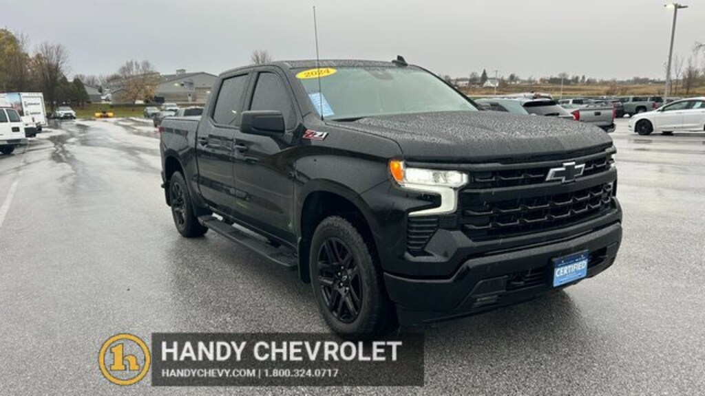 Recent Arrival!Here at HANDY CHEVROLET, it is our mission to be the automotive home of drivers in the Saint Albans, Burlington, and Franklin County area. We have been a family owned and operated dealership for 50+ years serving our community. We provide a vast selection of new and used vehicles, exceptional car care and customer service with a smile!Our staff at Handy Chevrolet of St. Albans, VT makes every effort to keep all information accurate and up to date. Contact a product specialist on our Sales team to inquire about availability. Contact us as soon as possible at 802 524 9737 to schedule the test drive of your next new or pre-owned vehicle!KEY POLICY: HANDY CHEVY PRE-OWNED VEHICLES COME STANDARD WITH ONE KEY. IF WE RECEIVED MORE THAN ONE KEY FROM THE PREVIOUS OWNER, WE INCLUDE THEM.Odometer is 6025 miles below market average!Clean CARFAX. CARFAX One-Owner.10-Speed Automatic, 4WD, Black Cloth.Black 2024 Chevrolet Silverado 1500 RST 4D Crew Cab 4WD 10-Speed Automatic EcoTec3 5.3L V8Handy Chevrolet is proud to present you with another True Market Priced Pre-Owned Vehicle. Transparent Pricing Of $ 49998 !! This 2024 Chevrolet Silverado 1500 RST is loaded with the following Factory Options: 10-Speed Automatic, 4WD, and Black Cloth Convenience Package (10-Way Power Driver Seat w/Lumbar, 120-Volt Bed Mounted Power Outlet, 120-Volt Interior Power Outlet, Dual Rear USB Ports (Charge Only), Dual-Zone Automatic Climate Control, Electric Rear-Window Defogger, Heated Driver & Front Outboard Passenger Seats, Heated Steering Wheel, Keyless Open & Start, Remote Vehicle Starter System, Theft Deterrent System (Unauthorized Entry), and Wrapped Steering Wheel), High Capacity Suspension Package, Preferred Equipment Group 1SP (12.3 Multicolor Reconfigurable Digital Display, 6-Speaker Audio System, All-Star Edition, Auto-Locking Rear Differential, Bluetooth® For Phone, Chevrolet Connected Access Capable, Color-Keyed Carpeting Floor Covering, Deep-Tinted Glass, Electrical Steering Column Lock, Electronic Cruise Control, EZ Lift Power Lock & Release Tailgate, Front Frame-Mounted Black Recovery Hooks, Front LED Fog Lamps, Front Rubberized Vinyl Floor Mats, HD Rear Vision Camera, Heated Power-Adjustable Outside Mirrors, High Gloss Black Mirror Caps, Inside Rear-View Mirror w/Tilt, LED Cargo Area Lighting, OnStar & Chevrolet Connected Services Capable, Power Front Windows w/Driver Express Up/Down, Power Front Windows w/Passenger Express Down, Power Rear Windows w/Express Down, Rear 60/40 Folding Bench Seat (Folds Up), Rear Rubberized-Vinyl Floor Mats, SiriusXM w/360L, Standard Tailgate, Steering Wheel Audio Controls, and Wi-Fi Hot Spot Capable), Standard Suspension Package, Trailering Package (Hitch Guidance), Z71 Off-Road Package (Dual Exhaust w/Polished Outlets, Heavy-Duty Air Filter, Hill Descent Control, and Off-Road Suspension), 10-Speed Automatic, 4WD, Black Cloth, 170 Amp Alternator, 2 USB Data Ports, 220 Amp Alternator, 3.23 Rear Axle Ratio, 4-Wheel Disc Brakes, 40/20/40 Front Split-Bench Seat, 6 Speakers, 6 Rectangular Black Tubular Assist Steps (LPO), ABS brakes, Air Conditioning, Alloy wheels, AM/FM radio: SiriusXM with 360L, Auto High-beam Headlights, Automatic Emergency Braking, Automatic temperature control, Auxiliary External Transmission Oil Cooler, Brake assist, Bumpers: body-color, Cloth Seat Trim, Compass, Delay-off headlights, Driver door bin, Driver vanity mirror, Dual front impact airbags, Dual front side impact airbags, Electronic Stability Control, Electronic Transmission Range Selector Shifter, External Engine Oil Cooler, Floor Mounted Center Console, Following Distance Indicator, Forward Collision Alert, Front anti-roll bar, Front Bucket Seats, Front Center Armrest w/Storage, Front dual zone A/C, Front fog lights, Front License Plate Kit, Front Pedestrian Braking, Front reading lights, Front wheel independent suspension, Fully automatic headlights, Heated do
