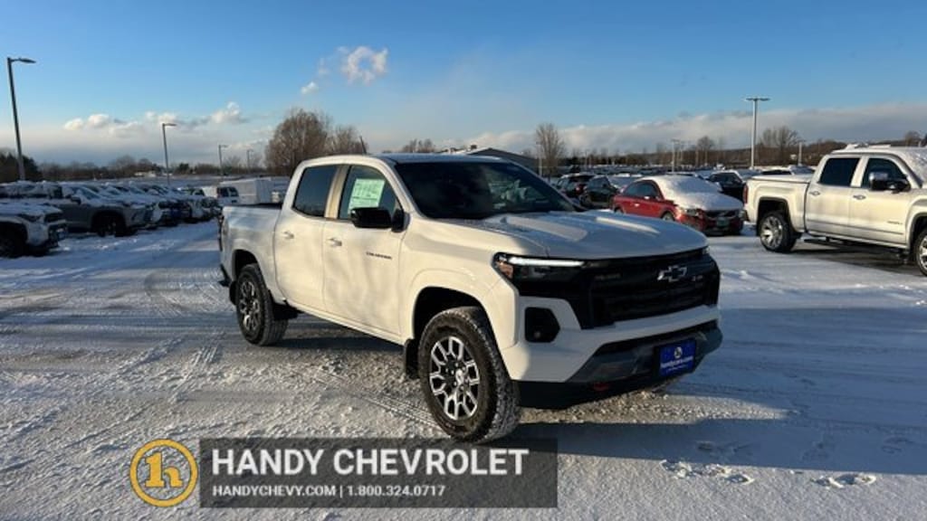 Handy Chevrolet is proud to present you with another True Market Priced Vehicle. This 2026 Chevrolet Colorado Z71 is loaded with the following Factory Options: 4WD 4WD, 1st and 2nd Row All-Weather Floor Liner, 3.42 Rear Axle Ratio, 4-Way Manual Passenger Seat Adjuster, 4-Wheel Disc Brakes, 6 Speakers, 6-Speaker Audio System Feature, 8-Way Power Driver Seat Adjuster, ABS brakes, Air Conditioning, Alloy wheels, AM/FM radio: SiriusXM with 360L, Apple CarPlay/Android Auto, Auto High-beam Headlights, Auto-dimming Rear-View mirror, Automatic Emergency Braking, Automatic temperature control, Brake assist, Bumpers: body-color, Chevy Safety Assist, Cloth/Evotex Seat Trim, Compass, Delay-off headlights, Driver and Front Passenger Heated Seats, Driver door bin, Driver vanity mirror, Dual front impact airbags, Dual front side impact airbags, Electronic Stability Control, Emergency communication system: OnStar, Following Distance Indicator, Forward Collision Alert, Front and Rear Splash Guards, Front anti-roll bar, Front Bucket Seats, Front Center Armrest, Front dual zone A/C, Front fog lights, Front Passenger Seatback Map Pocket, Front Pedestrian and Bicyclist Braking, Front reading lights, Front wheel independent suspension, Gloss Black Tailgate Lettering, Heated door mirrors, Heated front seats, Illuminated entry, IntelliBeam Automatic High Beam on/Off, Lane Keep Assist with Lane Departure Warning, Low tire pressure warning, Navigation System, Occupant sensing airbag, Outside temperature display, Overhead airbag, Overhead console, Panic alarm, Passenger door bin, Passenger vanity mirror, Power door mirrors, Power Driver Lumbar Control Seat Adjuster, Power driver seat, Power steering, Power windows, Radio data system, Radio: 11.3 Diagonal Advanced Color LCD Display, Rear reading lights, Rear step bumper, Rear window defroster, Remote keyless entry, Security system, SiriusXM with 360L Trial Subscription, Speed control, Speed-sensing steering, Split folding rear seat, Steering Wheel Mounted Audio Controls, Steering wheel mounted audio controls, Tachometer, Telescoping steering wheel, Tilt steering wheel, Traction control, Trip computer, Variably intermittent wipers, Wheels: 18 x 8.5 Android Dark Full Gloss Aluminum, and Wireless Phone Projection!! Tax, title, license and dealer fees (unless itemized above) are extra. Not available with special finance or lease offers. Price includes: $1750 - Chevrolet Consumer Cash Program. Exp. 01/02/2026