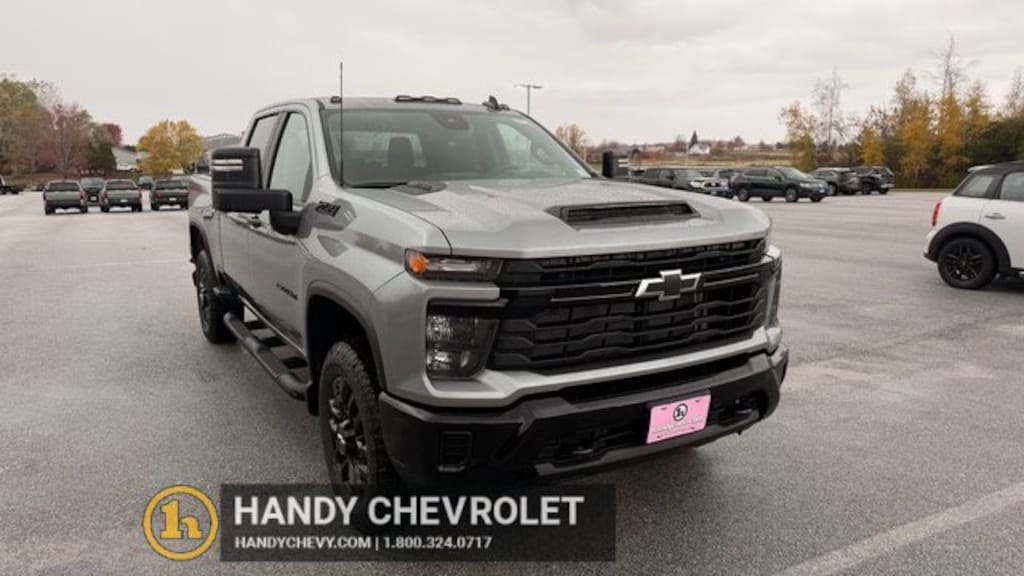 Handy Chevrolet is proud to present you with another True Market Priced Vehicle. This 2026 Chevrolet Silverado 2500HD Custom is loaded with the following Factory Options: 10-Speed Automatic, 4WD, and Black Cloth Custom Blackout Package (Black Tailgate Lettering (LPO) and Wheels: 20 High Gloss Black Painted), Custom Convenience Package (10-Way Power Driver Seat Adjuster w/Lumbar, 120-Volt Bed Mounted Power Outlet, 120-Volt Interior Power Outlet, Dual Rear USB Ports (Charge Only), Electric Rear-Window Defogger, EZ Lift Power Lock & Release Tailgate, LED Cargo Area Lighting, Remote Vehicle Starter System, and Unauthorized Entry Theft-Deterrent System), Preferred Equipment Group 1CX (170 Amp Alternator, 2-Speed Electronic Shift Transfer Case, 3.5 Diagonal Monochromatic Display DIC, Black Mirror Caps, Bluetooth® For Phone, Chevrolet Connected Access Capable, Color-Keyed Carpeting Floor Covering, Compass, Deep-Tinted Glass, Electronic Cruise Control w/Set & Resume Speed, Front Rubberized Vinyl Floor Mats, HD Rear Vision Camera, Heated Vertical Trailering Mirrors, Locking Tailgate, Manual Tailgate Function w/No EZ Lift, Manual Tilt-Wheel Steering Column, OnStar Services Capable, Power Door Locks, Power Front Windows w/Driver Express Up/Down, Power Front Windows w/Passenger Express Down, Power Rear Windows w/Express Down, Push Button Start, Rear 60/40 Folding Bench Seat (Folds Up), Rear Rubberized Vinyl Floor Mats, Remote Keyless Entry, SiriusXM w/360L Trial Subscription, Standard Tailgate, Wi-Fi Hotspot Capable, and Wireless Phone Projection), Snow Plow Prep/Camper Package (220 Amp Alternator), Suspension Package, Z71 Off-Road Package (Hill Descent Control), 10-Speed Automatic, 4WD, Black Cloth, 3.73 Rear Axle Ratio, 4-Wheel Disc Brakes, 4 Round Black Assist Steps (LPO), 5th Wheel & Gooseneck Trailer Wiring Provisions, 6 Speakers, 6-Speaker Audio System, 720 Cold-Cranking Amps Heavy-Duty Battery, ABS brakes, Air Conditioning, Alloy wheels, AM/FM radio: SiriusXM with 360L, Apple CarPlay/Android Auto, Auto High-beam Headlights, Black Molded Splash Guards (LPO), Brake assist, Cloth Seat Trim, Delay-off headlights, Driver door bin, Dual front impact airbags, Dual front side impact airbags, Durabed Pickup Bed, Electronic Stability Control, Emergency communication system: OnStar, Front 40/20/40 Split-Bench Seats w/Lockable Storage, Front anti-roll bar, Front Center Armrest w/Storage, Front License Plate Kit, Front reading lights, Front wheel independent suspension, Fully automatic headlights, Heated door mirrors, Illuminated entry, LED Smoked Amber Roof Marker Lamps, Low tire pressure warning, Occupant sensing airbag, Outside temperature display, Overhead airbag, Overhead console, Panic alarm, Passenger door bin, Passenger vanity mirror, Power door mirrors, Power steering, Power windows, Premium audio system: Chevrolet I Tax, title, license and dealer fees (unless itemized above) are extra. Not available with special finance or lease offers.