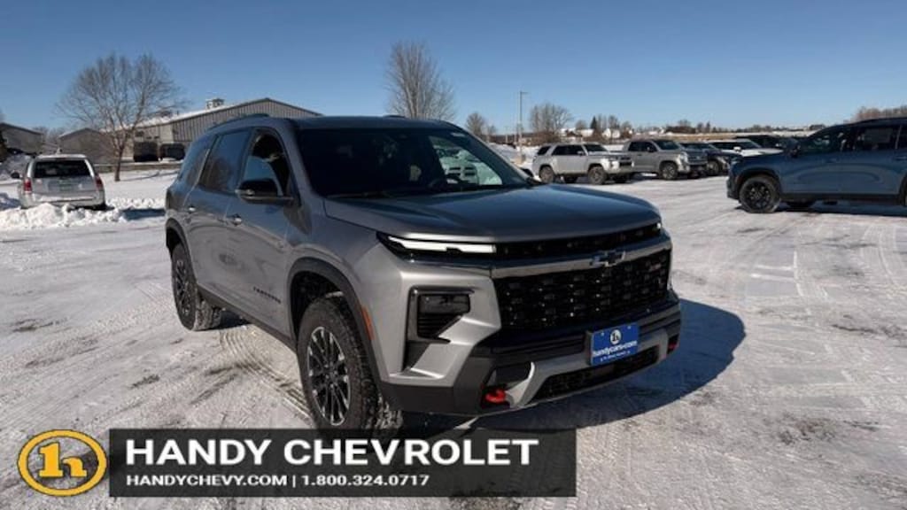 Handy Chevrolet is proud to present you with another True Market Priced Vehicle. This 2026 Chevrolet Traverse Z71 is loaded with the following Factory Options: AWD Preferred Equipment Group 2Z7, AWD, 3rd row seats: split-bench, 4-Way Manual Front Passenger Seat Adjuster, 4-Wheel Disc Brakes, 6 Speakers, 6-Speaker Audio System Feature, 8-Way Power Driver Seat Adjuster, ABS brakes, Air Conditioning, Alloy wheels, AM/FM radio: SiriusXM with 360L, Apple CarPlay/Android Auto, Auto High-beam Headlights, Automatic temperature control, Brake assist, Child-Seat-Sensing Airbag, Compass, Delay-off headlights, Driver door bin, Driver vanity mirror, Dual front impact airbags, Dual front side impact airbags, Electronic Stability Control, Emergency communication system: OnStar, Evotex Seat Trim, Four wheel independent suspension, Front anti-roll bar, Front Bucket Seats, Front Center Armrest, Front dual zone A/C, Front reading lights, Fully automatic headlights, Heated door mirrors, Heated Driver and Front Passenger Seats, Heated front seats, Heated steering wheel, Illuminated entry, Low tire pressure warning, Molded Splash Guards, Navigation System, Occupant sensing airbag, Outside temperature display, Overhead airbag, Overhead console, Panic alarm, Passenger door bin, Passenger vanity mirror, Power door mirrors, Power driver seat, Power Dual Glass Panoramic Sliding Sunroof, Power Liftgate, Power steering, Power windows, Radio data system, Radio: : Audio System w/17.7 Diagonal Display, Rear air conditioning, Rear anti-roll bar, Rear reading lights, Rear window defroster, Rear window wiper, Remote keyless entry, Security system, SiriusXM with 360L Trial Subscription, Speed control, Speed-sensing steering, Spoiler, Steering wheel mounted audio controls, Tachometer, Telescoping steering wheel, Tilt steering wheel, Traction control, Trip computer, Turn signal indicator mirrors, Variably intermittent wipers, Voltmeter, and Wheels: : 18 High Gloss Black Painted Aluminum!!