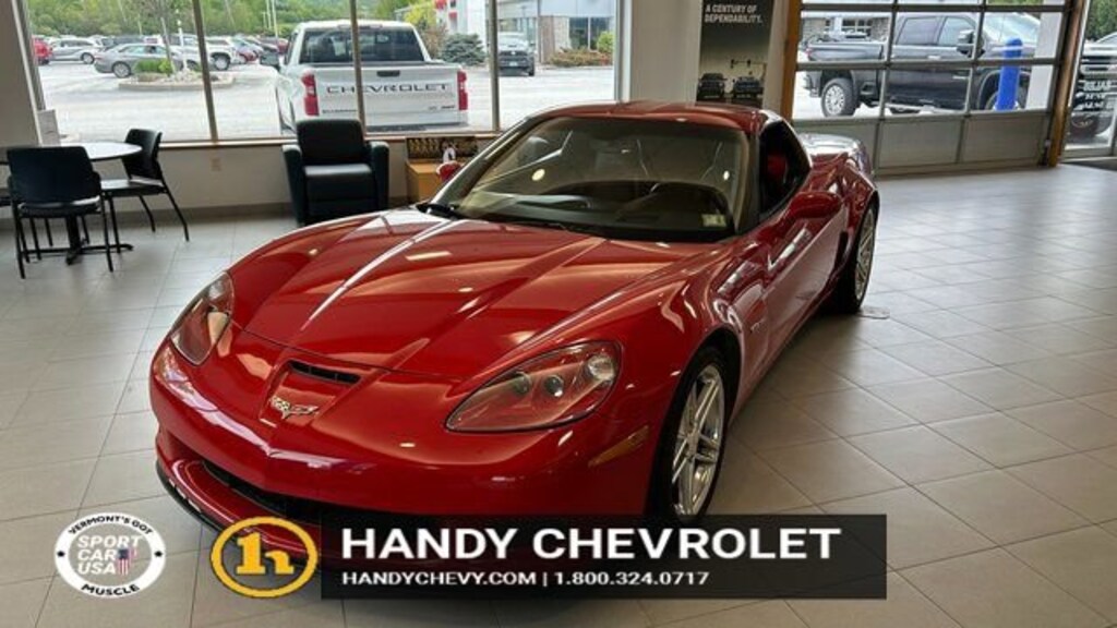 Here at HANDY CHEVROLET, it is our mission to be the automotive home of drivers in the Saint Albans, Burlington, and Franklin County area. We have been a family owned and operated dealership for 50+ years serving our community. We provide a vast selection of new and used vehicles, exceptional car care and customer service with a smile!Our staff at Handy Chevrolet of St. Albans, VT makes every effort to keep all information accurate and up to date. Contact a product specialist on our Sales team to inquire about availability. Contact us as soon as possible at 802 524 9737 to schedule the test drive of your next new or pre-owned vehicle!KEY POLICY: HANDY CHEVY PRE-OWNED VEHICLES COME STANDARD WITH ONE KEY. IF WE RECEIVED MORE THAN ONE KEY FROM THE PREVIOUS OWNER, WE INCLUDE THEM.Clean CARFAX.Victory Red 2007 Chevrolet Corvette Z06 Hardtop 2D Coupe RWD 6-Speed Manual 7.0L V8 SFI 16/26 City/Highway MPGHandy Chevrolet is proud to present you with another True Market Priced Pre-Owned Vehicle. Transparent Pricing Of $ 54998 !! This 2007 Chevrolet Corvette Z06 Hardtop is loaded with the following Factory Options: Memory Package, Z06 Preferred Equipment Group (Compass, Driver & Passenger Frontal & Side-Impact Airbags, Head-Up Display, Inside Rear-View Auto-Dimming Mirror w/Compass, Steering Wheel Mounted Audio Controls, Universal Home Remote, and XM Satellite Radio), 4-Wheel Disc Brakes, 7 Speakers, ABS brakes, Air Conditioning, Alloy wheels, Automatic temperature control, Bumpers: body-color, CD player, Delay-off headlights, Driver door bin, Driver vanity mirror, Dual front impact airbags, Electronic Stability Control, Four wheel independent suspension, Front anti-roll bar, Front Bucket Seats, Front Center Armrest, Front dual zone A/C, Front fog lights, Front License Plate Bracket, Front reading lights, Fully automatic headlights, Heads-Up Display, Heated door mirrors, High-Intensity Discharge Headlights, Highwear Nuance Perforated Leather Seat Trim, Illuminated entry, Leather Shift Knob, Leather steering wheel, Low tire pressure warning, Occupant sensing airbag, Outside temperature display, Panic alarm, Passenger door bin, Passenger vanity mirror, Power door mirrors, Power driver seat, Power steering, Power windows, Radio data system, Rear anti-roll bar, Rear window defroster, Remote keyless entry, Security system, Speed control, Speed-sensing steering, Spoiler, Sport steering wheel, Tachometer, Tilt steering wheel, Traction control, Trip computer, Variably intermittent wipers, and Voltmeter!!