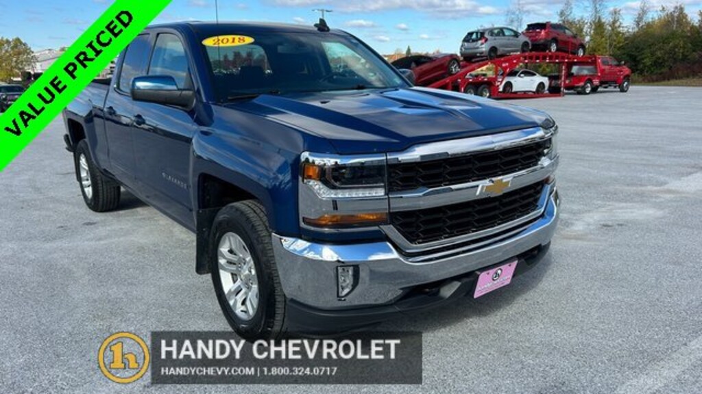 Handy Chevrolet is proud to present you with another True Market Priced Pre-Owned Vehicle. Transparent Pricing Of $ 25073 !! This 2018 Chevrolet Silverado 1500 LT LT1 is loaded with the following Factory Options: 6-Speed Automatic Electronic with Overdrive, 4WD, and Black Cloth All Star Edition (110-Volt AC Power Outlet, Dual-Zone Automatic Climate Control, Electric Rear-Window Defogger, Remote Vehicle Starter System, Theft Deterrent System (Unauthorized Entry), and Thin Profile LED Fog Lamps), Trailering Package (Heavy-Duty Rear Locking Differential), 6-Speed Automatic Electronic with Overdrive, 4WD, Black Cloth, 10-Way Power Driver's Seat Adjuster, 150 Amp Alternator, 3.42 Rear Axle Ratio, 4-Wheel Disc Brakes, 4.2 Diagonal Color Display Driver Info Center, 40/20/40 Front Split Bench Seat, 6 Speaker Audio System, 6 Speakers, ABS brakes, Air Conditioning, Alloy wheels, AM/FM radio: SiriusXM, Bluetooth® For Phone, Body Color Bodyside Moldings, Body-Color Door Handles, Body-Color Mirror Caps, Body-Color Power Adjustable Heated Outside Mirrors, Bodyside moldings, Brake assist, CD player, Chevrolet Connected Access, Chevrolet w/4G LTE, Cloth Seat Trim, Color-Keyed Carpeting w/Rubberized Vinyl Floor Mats, Compass, Deep-Tinted Glass, Delay-off headlights, Driver & Front Passenger Illuminated Vanity Mirrors, Driver door bin, Driver vanity mirror, Dual front impact airbags, Dual front side impact airbags, E85 FlexFuel Capable, Electronic Stability Control, Exterior Parking Camera Rear, EZ Lift & Lower Tailgate, Front anti-roll bar, Front Center Armrest w/Storage, Front Chrome Bumper, Front License Plate Kit, Front reading lights, Front wheel independent suspension, Fully automatic headlights, HD Radio, Heated door mirrors, High-Intensity Discharge Headlights, Illuminated entry, Leather Wrapped Steering Wheel w/Cruise Controls, Low tire pressure warning, Manual Tilt Wheel Steering Column, Occupant sensing airbag, OnStar & Chevrolet Connected Services Capable, Outside temperature display, Overhead airbag, Overhead console, Panic alarm, Passenger door bin, Passenger vanity mirror, Power door mirrors, Power steering, Power windows, Power Windows w/Driver Express Up, Premium audio system: Chevrolet MyLink, Radio data system, Radio: AM/FM 8 Diagonal Color Touch Screen, Rear 60/40 Folding Bench Seat (Folds Up), Rear Chrome Bumper, Rear reading lights, Rear step bumper, Rear Wheelhouse Liners, Remote Keyless Entry, Remote keyless entry, Remote Locking Tailgate, Single Slot CD/MP3 Player, SiriusXM Satellite Radio, Speed control, Speed-sensing steering, Split folding rear seat, Steering Wheel Audio Controls, Steering wheel mounted audio controls, Tachometer, Tilt steering wheel, Traction control, Trip computer, Variably intermittent wipers, and Voltmeter!!
