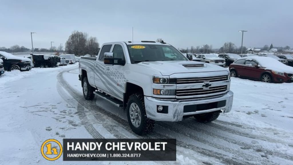 Here at HANDY CHEVROLET, it is our mission to be the automotive home of drivers in the Saint Albans, Burlington, and Franklin County area. We have been a family owned and operated dealership for 50+ years serving our community. We provide a vast selection of new and used vehicles, exceptional car care and customer service with a smile!Our staff at Handy Chevrolet of St. Albans, VT makes every effort to keep all information accurate and up to date. Contact a product specialist on our Sales team to inquire about availability. Contact us as soon as possible at 802 524 9737 to schedule the test drive of your next new or pre-owned vehicle!KEY POLICY: HANDY CHEVY PRE-OWNED VEHICLES COME STANDARD WITH ONE KEY. IF WE RECEIVED MORE THAN ONE KEY FROM THE PREVIOUS OWNER, WE INCLUDE THEM.Priced below KBB Fair Purchase Price! Odometer is 36806 miles below market average!Clean CARFAX. CARFAX One-Owner.Allison 1000 6-Speed Automatic, 4WD, Jet Black Leather.Iridescent Pearl Tricoat 2019 Chevrolet Silverado 3500HD LTZ 4D Crew Cab 4WD Allison 1000 6-Speed Automatic Duramax 6.6L V8 TurbodieselHandy Chevrolet is proud to present you with another True Market Priced Pre-Owned Vehicle. Transparent Pricing Of $ 46998 !! This 2019 Chevrolet Silverado 3500HD LTZ is loaded with the following Factory Options: Allison 1000 6-Speed Automatic, 4WD, and Jet Black Leather Driver Alert Package (Forward Collision Alert and Lane Departure Warning System), Duramax Plus Package (6-Speaker Audio System, Engine Block Heater, HD Radio, Radio: Chevrolet Infotainment System w/Navigation, and SiriusXM Radio), Gooseneck/5th Wheel Prep Package, LTZ Plus Package (Leather Wrapped Heated Steering Wheel and Power Adjustable Pedals), Off-Road Suspension Package (Hill Descent Control), Preferred Equipment Group 1LZ (110-Volt AC Power Outlet, 150 Amps Alternator, 4.2 Diagonal Color Display Driver Info Center, Auto-Dimming Inside Rear-View Mirror, Chevrolet 4G LTE, Chevrolet Connected Access, Chrome Bodyside Moldings, Chrome Door Handles, Chrome Power-Adjustable Heated Outside Mirrors, Color-Keyed Carpeting Floor Covering, Deep-Tinted Glass, Digital Steering Assist, Driver & Front Passenger Visors, Dual-Zone Automatic Climate Control, Electric Rear-Window Defogger, Electronic Shift Transfer Case, EZ-Lift & Lower Tailgate, Front Halogen Fog Lamps, Leather-Wrapped Steering Wheel, Manual Tilt-Wheel/Telescoping Steering Column, OnStar & Chevrolet Connected Services Capable, Power Sliding Rear Window w/Defogger, Power Windows, Rear 60/40 Folding Bench Seat (Folds Up), Rear Wheelhouse Liners, Remote Keyless Entry, Remote Locking Tailgate, Remote Vehicle Starter System, Single-Slot CD/MP3 Player, Steering Wheel Audio Controls, Unauthorized Entry Theft-Deterrent System, and Universal Home Remote), Silverado HD Tribute Edition (Front & Rear Black Bowties and Spray-On Pickup Box Bed Liner w/Bowtie Logo), Snow Plow Prep Package (220 Amp Alternator and Provision for Cab Roof-Mounted Lamp/Beacon), Standard Suspension Package, Trailering Equipment, Allison 1000 6-Speed Automatic, 4WD, Jet Black Leather, 1-Piece Radiator Grille & Fr Bumper Opening Cover, 18 Chromed Aluminum Wheels, 4-Wheel Disc Brakes, 6 Speakers, 6 Rectangular Chromed Assist Steps (LPO), ABS brakes, Air Conditioning, Alloy wheels, AM/FM radio, Auto-dimming Rear-View mirror, Automatic temperature control, Black Molded Splash Guards (LPO), Bodyside moldings, Bose 6 Speaker Sound System, Brake assist, Bumpers: chrome, CD player, Chrome wheels, Compass, Delay-off headlights, Driver door bin, Driver vanity mirror, Dual front impact airbags, Electronic Stability Control, Emergency communication system, Exhaust Brake, Exterior Parking Camera Rear, Floor Mounted Console, Front 40/20/40 Split Bench Seat, Front anti-roll bar, Front Center Armrest w/Storage, Front dual zone A/C, Front fog lights, Front Full Feature Bucket Seats, Front License Plate Kit, Front reading lights, Front wh