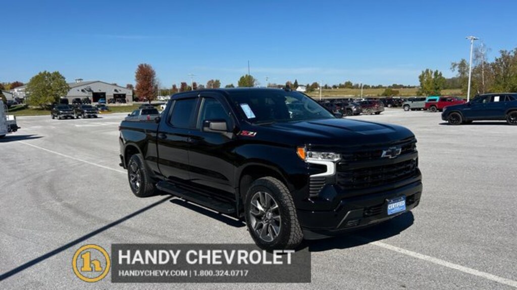 Handy Chevrolet is proud to present you with another True Market Priced Pre-Owned Vehicle. Transparent Pricing Of $ 42780 !! This 2022 Chevrolet Silverado 1500 RST is loaded with the following Factory Options: 10-Speed Automatic, 4WD, and Black Cloth Convenience Package (10-Way Power Driver Seat w/Lumbar, 120-Volt Bed Mounted Power Outlet, 120-Volt Instrument Panel Power Outlet, Dual Rear USB Ports (Charge Only), Dual-Zone Automatic Climate Control, Electric Rear-Window Defogger, Heated Driver & Front Outboard Passenger Seats, Heated Steering Wheel, Keyless Open & Start, Leather Wrapped Steering Wheel, Manual Tilt/Telescoping Steering Column, Remote Vehicle Starter System, and Theft Deterrent System (Unauthorized Entry)), Preferred Equipment Group 1SP (12.3 Multicolor Reconfigurable Digital Display, 6-Speaker Audio System, All-Star Edition, Auto-Locking Rear Differential, Bluetooth® For Phone, Chevrolet Connected Access Capable, Color-Keyed Carpeting Floor Covering, Compass, Deep-Tinted Glass, Electrical Steering Column Lock, Electronic Cruise Control, EZ Lift Power Lock & Release Tailgate, Front Frame-Mounted Black Recovery Hooks, Front LED Fog Lamps, Front Rubberized Vinyl Floor Mats, HD Rear Vision Camera, Heated Power-Adjustable Outside Mirrors, High Gloss Black Mirror Caps, Inside Rear-View Mirror w/Tilt, LED Cargo Area Lighting, OnStar & Chevrolet Connected Services Capable, Power Front Windows w/Driver Express Up/Down, Power Front Windows w/Passenger Express Down, Power Rear Windows w/Express Down, Rear 60/40 Folding Bench Seat (Folds Up), Rear Rubberized-Vinyl Floor Mats, SiriusXM w/360L, Standard Tailgate, Steering Wheel Audio Controls, Wi-Fi Hot Spot Capable, and Wireless Phone Projection), Protection Package (Chevytec Spray-On Black Bedliner and Rear Wheelhouse Liners), Standard Suspension Package, Trailering Package (Hitch Guidance), Z71 Off-Road & Protection Package (All-Weather Floor Liner (LPO) (AAK)), Z71 Off-Road Package (Dual Exhaust w/Polished Outlets, Heavy-Duty Air Filter, Hill Descent Control, and Off-Road Suspension), 10-Speed Automatic, 4WD, Black Cloth, 2 USB Data Ports, 220 Amp Alternator, 3.23 Rear Axle Ratio, 4-Wheel Disc Brakes, 40/20/40 Front Split-Bench Seat, 6 Speakers, 6 Rectangular Black Tubular Assist Steps (LPO), ABS brakes, Air Conditioning, Alloy wheels, AM/FM radio: SiriusXM with 360L, Apple CarPlay/Android Auto, Auto High-beam Headlights, Automatic Emergency Braking, Automatic temperature control, Brake assist, Bumpers: body-color, Cloth Seat Trim, Delay-off headlights, Driver door bin, Driver vanity mirror, Dual front impact airbags, Dual front side impact airbags, Electronic Stability Control, Electronic Transmission Range Selector Shifter, Floor Mounted Center Console, Following Distance Indicator, Forward Collision Alert, Front anti-roll bar, Front Bucket Seats, Front Center Armrest w/Storage, Front dual zone A/C, Front fog lights, Front License Plate Kit,
