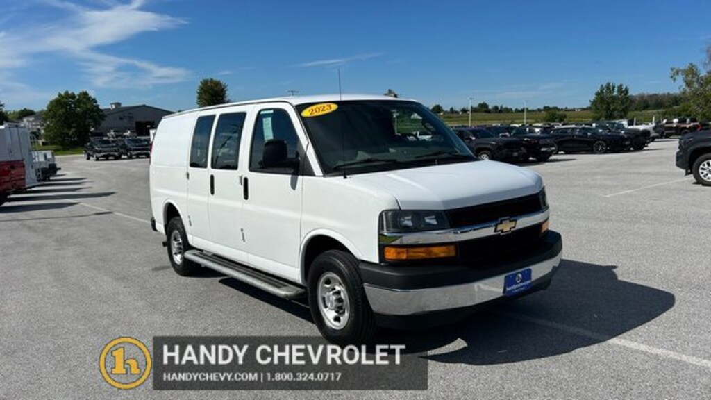 Handy Chevrolet is proud to present you with another True Market Priced Pre-Owned Vehicle. Transparent Pricing Of $ 31998 !! This 2023 Chevrolet Express 2500 Work Van Cargo is loaded with the following Factory Options: Chrome Appearance Package (Chrome Grille and Front & Rear Chrome Bumpers w/Step-Pad), Driver Convenience Package (Cruise Control and Tilt Steering Wheel), Preferred Equipment Group 1WT, 16 x 6.5 Steel Wheels, 2 Speakers, 3.42 Rear Axle Ratio, 4-Wheel Disc Brakes, ABS brakes, Air Conditioning, AM/FM radio, AM/FM Stereo w/MP3 Player, Black Rubberized-Vinyl Front Only Floor Covering, Delay-off headlights, Driver & Front Passenger High-Back Bucket Seats, Driver door bin, Driver's Seat Mounted Armrest, Dual front impact airbags, Dual front side impact airbags, Electronic Stability Control, Emergency communication system: OnStar and Chevrolet connected services capable, Engine Cover Console w/Swing-Out Storage Bin, Exterior Parking Camera Rear, Fixed Rear Door Window Glass, Fixed Rear Side Door Window Glass, Front anti-roll bar, Front Bucket Seats, Front Reclining High-Back Bucket Seats, Front wheel independent suspension, Full-Length Black Rubberized-Vinyl Floor Covering, Fully automatic headlights, Heated door mirrors, Low tire pressure warning, Occupant sensing airbag, Overhead airbag, Passenger cancellable airbag, Passenger door bin, Passenger seat mounted armrest, Power door mirrors, Power steering, Power windows, Rear & Side Cargo Door Glass, Rear Side Door Glass Window Security Bar, Reclining Front Bucket Seats w/Inboard Armrests, Seat-Mounted & Roof-Rail Side-Impact Airbags, Single-Zone Manual Air Conditioning, Tachometer, Traction control, Trip computer, Variably intermittent wipers, Vinyl Seat Trim, and Voltmeter!!