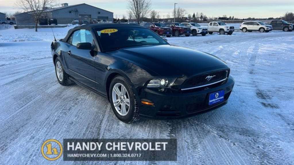 Here at HANDY CHEVROLET, it is our mission to be the automotive home of drivers in the Saint Albans, Burlington, and Franklin County area. We have been a family owned and operated dealership for 50+ years serving our community. We provide a vast selection of new and used vehicles, exceptional car care and customer service with a smile!Our staff at Handy Chevrolet of St. Albans, VT makes every effort to keep all information accurate and up to date. Contact a product specialist on our Sales team to inquire about availability. Contact us as soon as possible at 802 524 9737 to schedule the test drive of your next new or pre-owned vehicle!KEY POLICY: HANDY CHEVY PRE-OWNED VEHICLES COME STANDARD WITH ONE KEY. IF WE RECEIVED MORE THAN ONE KEY FROM THE PREVIOUS OWNER, WE INCLUDE THEM.Odometer is 44734 miles below market average!Clean CARFAX.Black 2014 Ford Mustang V6 2D Convertible RWD 6-Speed Automatic 3.7L V6 Ti-VCT 24V 19/30 City/Highway MPGHandy Chevrolet is proud to present you with another True Market Priced Pre-Owned Vehicle. Transparent Pricing Of $ 16498 !! This 2014 Ford Mustang V6 is loaded with the following Factory Options: Reverse Sensing System & Security Package (Active Anti-Theft System, Reverse Sensing System, and Wheel Locking Kit), 4-Wheel Disc Brakes, ABS brakes, Air Conditioning, Alloy wheels, Brake assist, Bumpers: body-color, CD player, Compass, Convertible roof lining, Delay-off headlights, Driver door bin, Driver vanity mirror, Dual front impact airbags, Dual front side impact airbags, Electronic Stability Control, Front anti-roll bar, Front Bucket Seats, Front Center Armrest, Front reading lights, Front wheel independent suspension, Glass rear window, High-Intensity Discharge Headlights, Illuminated entry, Low tire pressure warning, Occupant sensing airbag, Outside temperature display, Panic alarm, Passenger door bin, Passenger vanity mirror, Power convertible roof, Power door mirrors, Power steering, Power windows, Premium AM/FM Stereo w/Single CD/Clock, Radio data system, Rear anti-roll bar, Rear window defroster, Remote keyless entry, Speed control, Speed-sensing steering, Steering wheel mounted audio controls, SYNC Communications & Entertainment System, Tachometer, Tilt steering wheel, Traction control, Trip computer, and Variably intermittent wipers!!Awards:* 2014 KBB.com 10 Coolest New Cars Under $25,000 * 2014 KBB.com 5-Year Cost to Own Awards * 2014 KBB.com Brand Image Awards
