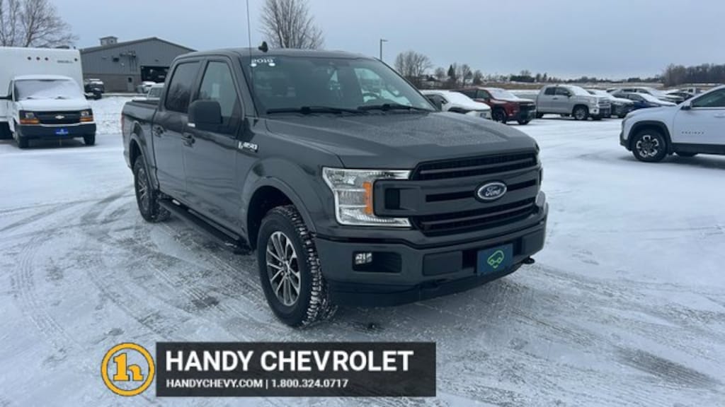Handy Chevrolet is proud to present you with another True Market Priced Pre-Owned Vehicle. Transparent Pricing Of $ 27660 !! This 2019 Ford F-150 XLT is loaded with the following Factory Options: 4WD Equipment Group 302A Luxury (4.2 Productivity Screen in Instrument Cluster, Auto-Dimming Rear-View Mirror, Cloth 40/20/40 Front Seat, Fixed Backlight w/Privacy Glass, Heated Front Seats, Leather-Wrapped Steering Wheel, Power Glass Heated Sideview Mirrors, Power-Adjustable Pedals, Rear Under-Seat Storage, Rear Window Defroster, Remote Start System, and SiriusXM Radio), GVWR: 6,500 lbs Payload Package, GVWR: 6,600 lbs Payload Package, Trailer Tow Package (Class IV Trailer Hitch Receiver and Pro Trailer Backup Assist), XLT Chrome Appearance Package (2-Bar Style Grille w/Chrome 2 Minor Bars, Chrome Door & Tailgate Handles w/Body-Color Bezel, Chrome Step Bars, Single-Tip Chrome Exhaust, and Wheels: 18 Chrome-Like PVD), XLT Power Equipment Group (LED Box Lighting and Power-Sliding Rear Window), XLT Sport Appearance Package (2-Bar Style Grille w/2 Minor Bars Painted Dark, Accent-Color Step Bars, Body-Color Door & Tailgate Handles, Body-Color Front & Rear Bumpers, Box Side Decals, and Wheels: 18 6-Spoke Machined-Aluminum), 4WD, 110V/400W Outlet, 4-Wheel Disc Brakes, 6 Speakers, 8-Way Power Driver Seat, ABS brakes, Air Conditioning, Alloy wheels, AM/FM radio, AppLink/Apple CarPlay and Android Auto, Auto High-beam Headlights, Brake assist, Bumpers: chrome, Compass, Delay-off headlights, Driver door bin, Driver vanity mirror, Dual front impact airbags, Dual front side impact airbags, Electronic Stability Control, Emergency communication system: SYNC 3 911 Assist, Extended Range 36 Gallon Fuel Tank, Exterior Parking Camera Rear, Front anti-roll bar, Front Center Armrest w/Storage, Front fog lights, Front License Plate Bracket, Front wheel independent suspension, Fully automatic headlights, Illuminated entry, Low tire pressure warning, Occupant sensing airbag, Outside temperature display, Overhead airbag, Panic alarm, Passenger door bin, Passenger vanity mirror, Power door mirrors, Power steering, Power windows, Radio data system, Radio: AM/FM Stereo w/6 Speakers, Rear step bumper, Remote keyless entry, Reverse Sensing System, Security system, Speed control, Speed-sensing steering, Split folding rear seat, Steering wheel mounted audio controls, SYNC 3, Tachometer, Telescoping steering wheel, Tilt steering wheel, Tough Bed Spray-In Bedliner, Traction control, Tray Style Floor Liner, Variably intermittent wipers, Voice-Activated Touchscreen Navigation, Voltmeter, and Wheels: 17 Silver Painted Aluminum!!