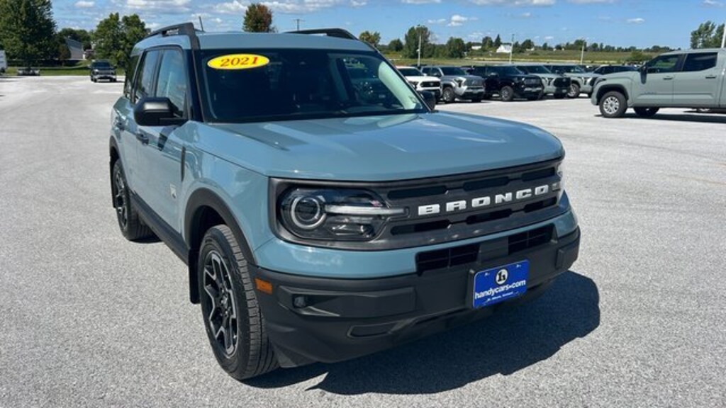 Here at HANDY CHEVROLET, it is our mission to be the automotive home of drivers in the Saint Albans, Burlington, and Franklin County area. We have been a family owned and operated dealership for 50+ years serving our community. We provide a vast selection of new and used vehicles, exceptional car care and customer service with a smile!Our staff at Handy Chevrolet of St. Albans, VT makes every effort to keep all information accurate and up to date. Contact a product specialist on our Sales team to inquire about availability. Contact us as soon as possible at 802 524 9737 to schedule the test drive of your next new or pre-owned vehicle!KEY POLICY: HANDY CHEVY PRE-OWNED VEHICLES COME STANDARD WITH ONE KEY. IF WE RECEIVED MORE THAN ONE KEY FROM THE PREVIOUS OWNER, WE INCLUDE THEM.Area 51 2021 Ford Bronco Sport Big Bend 4D Sport Utility 4WD 8-Speed Automatic 1.5L EcoBoost 25/28 City/Highway MPGHandy Chevrolet is proud to present you with another True Market Priced Pre-Owned Vehicle. Transparent Pricing Of $ 20701 !! This 2021 Ford Bronco Sport Big Bend is loaded with the following Factory Options: Class II Trailer Tow Package w/Trailer Sway Control, Equipment Group 200A, Ford Co-Pilot360 Assist+ (DISC) (Adaptive Cruise Control w/Stop & Go, Evasive Steering Assist, and Voice-Activated Touchscreen Navigation System), 3.80 Axle Ratio, 4-Wheel Disc Brakes, 6 Speakers, ABS brakes, Air Conditioning, Alloy wheels, AM/FM radio: SiriusXM, AM/FM Stereo, Auto High-beam Headlights, Automatic temperature control, Brake assist, Compass, Delay-off headlights, Driver door bin, Driver vanity mirror, Dual front impact airbags, Dual front side impact airbags, Electronic Stability Control, Emergency communication system: SYNC 3 911 Assist, Exterior Parking Camera Rear, Four wheel independent suspension, Front & Rear Splash Guards, Front anti-roll bar, Front Bucket Seats, Front Center Armrest, Front fog lights, Front reading lights, Fully automatic headlights, Heated door mirrors, Illuminated entry, Knee airbag, Low tire pressure warning, Occupant sensing airbag, Outside temperature display, Overhead airbag, Overhead console, Panic alarm, Passenger door bin, Passenger vanity mirror, Power door mirrors, Power steering, Power windows, Radio data system, Rear anti-roll bar, Rear reading lights, Rear seat center armrest, Rear window defroster, Rear window wiper, Remote keyless entry, Roof rack: rails only, Security system, SiriusXM Radio, Speed control, Speed-sensing steering, Speed-Sensitive Wipers, Split folding rear seat, Steering wheel mounted audio controls, SYNC 3 Communications & Entertainment System, SYNC 3/Apple CarPlay/Android Auto, Tachometer, Telescoping steering wheel, Tilt steering wheel, Traction control, Trip computer, Unique Cloth Front Bucket Seats, Variably intermittent wipers, Wheels: 17 Carbonized Gray-Painted Aluminum, and Wheels: 18 Ebony Black-Painted Aluminum (DISC)!!Awards:* JD Power Automotive Performance, Execution and Layout (APEAL) Study