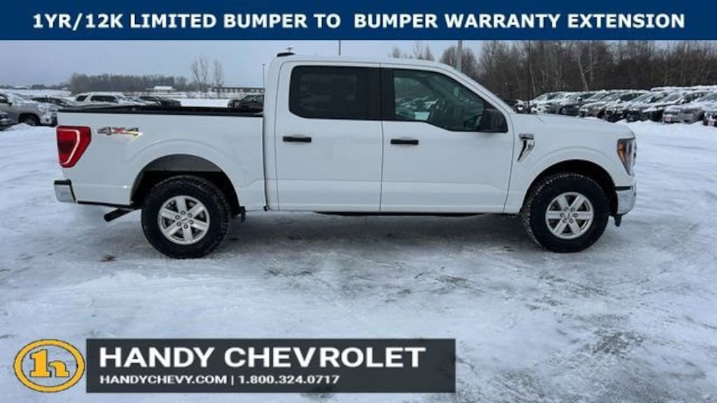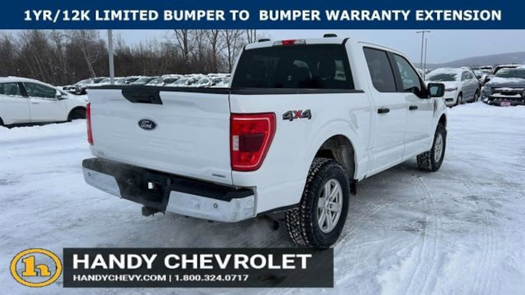 Here at HANDY CHEVROLET, it is our mission to be the automotive home of drivers in the Saint Albans, Burlington, and Franklin County area. We have been a family owned and operated dealership for 50+ years serving our community. We provide a vast selection of new and used vehicles, exceptional car care and customer service with a smile!Our staff at Handy Chevrolet of St. Albans, VT makes every effort to keep all information accurate and up to date. Contact a product specialist on our Sales team to inquire about availability. Contact us as soon as possible at 802 524 9737 to schedule the test drive of your next new or pre-owned vehicle!KEY POLICY: HANDY CHEVY PRE-OWNED VEHICLES COME STANDARD WITH ONE KEY. IF WE RECEIVED MORE THAN ONE KEY FROM THE PREVIOUS OWNER, WE INCLUDE THEM.Priced below KBB Fair Purchase Price! Odometer is 4571 miles below market average!Clean CARFAX.4WD, ABS brakes, Alloy wheels, Compass, Electronic Stability Control, Heated door mirrors, Illuminated entry, Low tire pressure warning, Remote keyless entry, Traction control.White 2023 Ford F-150 XLT 4D SuperCrew 4WD 10-Speed Automatic 3.5L V6 EcoBoostHandy Chevrolet is proud to present you with another True Market Priced Pre-Owned Vehicle. Transparent Pricing Of $ 39998 !! This 2023 Ford F-150 XLT is loaded with the following Factory Options: 4WD, ABS brakes, Alloy wheels, Compass, Electronic Stability Control, Heated door mirrors, Illuminated entry, Low tire pressure warning, Remote keyless entry, and Traction control 4WD, ABS brakes, Alloy wheels, Compass, Electronic Stability Control, Heated door mirrors, Illuminated entry, Low tire pressure warning, Remote keyless entry, Traction control, 4-Wheel Disc Brakes, 6 Speakers, Air Conditioning, AM/FM radio, Auto High-beam Headlights, Brake assist, Bumpers: chrome, Cloth 40/20/40 Front Seat, Delay-off headlights, Driver door bin, Driver vanity mirror, Dual front impact airbags, Dual front side impact airbags, Emergency communication system: SYNC 4 911 Assist, Exterior Parking Camera Rear, Front anti-roll bar, Front Center Armrest w/Storage, Front fog lights, Front reading lights, Front wheel independent suspension, Fully automatic headlights, Occupant sensing airbag, Outside temperature display, Overhead airbag, Overhead console, Panic alarm, Passenger door bin, Passenger vanity mirror, Power door mirrors, Power steering, Power windows, Radio data system, Radio: AM/FM Stereo w/6 Speakers, Rear reading lights, Rear step bumper, Rear window defroster, Security system, Speed control, Speed-sensing steering, Split folding rear seat, Steering wheel mounted audio controls, SYNC 4, Tachometer, Telescoping steering wheel, Tilt steering wheel, Trip computer, Variably intermittent wipers, Voltmeter, and Wheels: 17 Silver Painted Aluminum!!