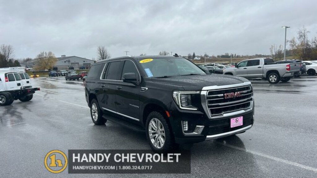 Recent Arrival!Here at HANDY CHEVROLET, it is our mission to be the automotive home of drivers in the Saint Albans, Burlington, and Franklin County area. We have been a family owned and operated dealership for 50+ years serving our community. We provide a vast selection of new and used vehicles, exceptional car care and customer service with a smile!Our staff at Handy Chevrolet of St. Albans, VT makes every effort to keep all information accurate and up to date. Contact a product specialist on our Sales team to inquire about availability. Contact us as soon as possible at 802 524 9737 to schedule the test drive of your next new or pre-owned vehicle!KEY POLICY: HANDY CHEVY PRE-OWNED VEHICLES COME STANDARD WITH ONE KEY. IF WE RECEIVED MORE THAN ONE KEY FROM THE PREVIOUS OWNER, WE INCLUDE THEM.Odometer is 42245 miles below market average!Clean CARFAX.4WD.Black 2022 GMC Yukon XL SLT 4D Sport Utility 4WD 10-Speed Automatic with Overdrive 3.0L I6 20/26 City/Highway MPGHandy Chevrolet is proud to present you with another True Market Priced Pre-Owned Vehicle. Transparent Pricing Of $ 61998 !! This 2022 GMC Yukon XL SLT is loaded with the following Factory Options: 4WD 4WD, 2 Presets For Power Driver Seat, 3.23 Rear Axle Ratio, 3rd row seats: split-bench, 4-Wheel Disc Brakes, 9 Speakers, ABS brakes, Air Conditioning, Alloy wheels, AM/FM radio: SiriusXM with 360L, AM/FM Stereo, Apple CarPlay/Android Auto, Auto High-beam Headlights, Auto-dimming Rear-View mirror, Automatic Emergency Braking, Automatic Stop/Start, Automatic temperature control, Bodyside moldings, Bose 9-Speaker Stereo Audio System Feature, Brake assist, Bright Chrome Bodyside Moldings, Bright Front & Rear Door Sill Plates, Bumpers: body-color, Chrome Door Handles w/Body-Color Strip, Compass, Delay-off headlights, Driver door bin, Driver vanity mirror, Dual front impact airbags, Dual front side impact airbags, Electronic Stability Control, Emergency communication system: OnStar and GMC Connected Services capable, Following Distance Indicator, Forward Collision Alert, Four wheel independent suspension, Front & Rear Park Assist, Front anti-roll bar, Front Bucket Seats, Front Center Armrest, Front dual zone A/C, Front fog lights, Front Pedestrian Braking, Front reading lights, Fully automatic headlights, Garage door transmitter, Hands-Free Power Programmable Rear Liftgate, Heated & Ventilated Driver & Front Passenger Seats, Heated door mirrors, Heated Driver & Front Passenger Seats, Heated front seats, Illuminated entry, Inside Rear-View Auto-Dimming Mirror, IntelliBeam Automatic High Beam On/Off, Lane Change Alert w/Side Blind Zone Alert, Lane Keep Assist w/Lane Departure Warning, Leather steering wheel, Low tire pressure warning, Memory seat, Navigation System, Occupant sensing airbag, Outside temperature display, Overhead airbag, Overhead console, Panic alarm, Passenger door bin, Passenger vanity mirror, Perforated Leather-Appointed Seating, Power door mirrors, Power driver seat, Power Liftgate, Power passenger seat, Power steering, Power windows, Premium Smooth Ride Suspension, Rain sensing wipers, Rear air conditioning, Rear anti-roll bar, Rear Cross Traffic Alert, Rear reading lights, Rear seat center armrest, Rear window defroster, Rear window wiper, Remote keyless entry, Roof rack: rails only, Safety Alert Seat, Security system, SiriusXM w/360L, Speed control, Speed-sensing steering, Split folding rear seat, Spoiler, Start/Stop System Disable Button, Steering wheel mounted audio controls, Tachometer, Telescoping steering wheel, Tilt steering wheel, Traction control, Trip computer, Universal Home Remote, Variably intermittent wipers, Ventilated front seats, Voltmeter, Wheels: 20 x 9 6-Spoke Polished Aluminum, and Wireless Charging!!