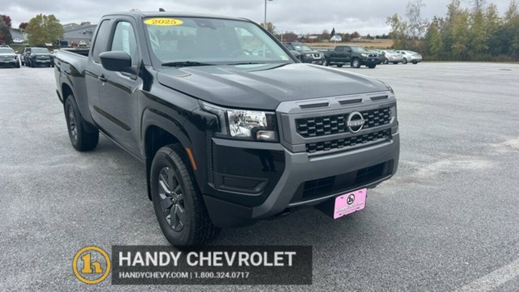 Here at HANDY CHEVROLET, it is our mission to be the automotive home of drivers in the Saint Albans, Burlington, and Franklin County area. We have been a family owned and operated dealership for 50+ years serving our community. We provide a vast selection of new and used vehicles, exceptional car care and customer service with a smile!Our staff at Handy Chevrolet of St. Albans, VT makes every effort to keep all information accurate and up to date. Contact a product specialist on our Sales team to inquire about availability. Contact us as soon as possible at 802 524 9737 to schedule the test drive of your next new or pre-owned vehicle!KEY POLICY: HANDY CHEVY PRE-OWNED VEHICLES COME STANDARD WITH ONE KEY. IF WE RECEIVED MORE THAN ONE KEY FROM THE PREVIOUS OWNER, WE INCLUDE THEM.Odometer is 851 miles below market average!CARFAX One-Owner.4WD.Super Black 2025 Nissan Frontier SV 4D King Cab 4WD 9-Speed Automatic with Overdrive 3.8L DI DOHC 24V V6Handy Chevrolet is proud to present you with another True Market Priced Pre-Owned Vehicle. Transparent Pricing Of $ !! This 2025 Nissan Frontier SV is loaded with the following Factory Options: 4WD 4WD, 17 Alloy Wheels, 3.692 Axle Ratio, 4-Wheel Disc Brakes, 6 Speakers, ABS brakes, Air Conditioning, Alloy wheels, AM/FM radio: SiriusXM, Anti-whiplash front head restraints, Auto High-beam Headlights, Blind Spot Warning, Brake assist, Bumpers: body-color, Delay-off headlights, Driver door bin, Driver vanity mirror, Dual front impact airbags, Dual front side impact airbags, Electronic Stability Control, Emergency communication system, Front anti-roll bar, Front Bucket Seats, Front Center Armrest, Front reading lights, Front wheel independent suspension, Fully automatic headlights, Illuminated entry, Knee airbag, Low tire pressure warning, Occupant sensing airbag, Overhead airbag, Overhead console, Panic alarm, Passenger door bin, Passenger vanity mirror, Power door mirrors, Power driver seat, Power steering, Power windows, Premium Cloth Seat Trim, Radio data system, Radio: SXM/AM/FM/AUX/USB Audio System, Rear side impact airbag, Rear step bumper, Remote keyless entry, Security system, Speed control, Speed-sensing steering, Split folding rear seat, Steering wheel mounted audio controls, Tachometer, Telescoping steering wheel, Tilt steering wheel, Traction control, Trip computer, Variably intermittent wipers, Voltmeter, and Wireless Apple CarPlay/Wireless Android Auto!!