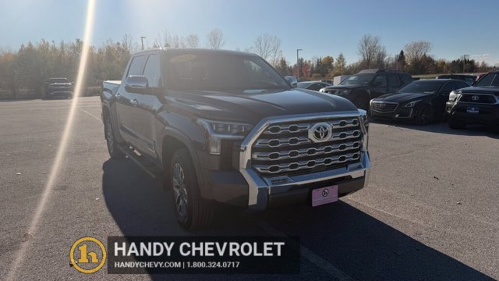 Handy Chevrolet is proud to present you with another True Market Priced Pre-Owned Vehicle. Transparent Pricing Of $ 62704 !! This 2025 Toyota Tundra 1794 is loaded with the following Factory Options: 4WD and Saddle Tan w/Premium Leather Seat Trim 4WD, Saddle Tan w/Premium Leather Seat Trim, 10-Way Pwr Adj Heated and Ventilated Front Seats, 12 Speakers, 3.31 Axle Ratio, 4-Wheel Disc Brakes, ABS brakes, Air Conditioning, Alloy wheels, AM/FM radio: SiriusXM, Apple CarPlay/Android Auto, Auto High-beam Headlights, Auto-dimming door mirrors, Auto-dimming Rear-View mirror, Automatic temperature control, Brake assist, Bumpers: body-color, Chrome Exhaust Tail Pipe & Diffuser, Delay-off headlights, Driver door bin, Driver vanity mirror, Dual front impact airbags, Dual front side impact airbags, Electronic Stability Control, Emergency communication system: Safety Connect (10-year trial), Exterior Parking Camera Rear, Front anti-roll bar, Front Bucket Seats, Front Center Armrest, Front dual zone A/C, Front fog lights, Front reading lights, Front wheel independent suspension, Fully automatic headlights, Garage door transmitter: HomeLink, Heated door mirrors, Heated front seats, Heated rear seats, Heated steering wheel, Illuminated entry, Knee airbag, Leather Shift Knob, Leather steering wheel, Low tire pressure warning, Memory seat, Navigation System, Occupant sensing airbag, Outside temperature display, Overhead airbag, Overhead console, Panic alarm, Passenger door bin, Passenger vanity mirror, Power door mirrors, Power driver seat, Power moonroof, Power passenger seat, Power steering, Power windows, Premium Leather Seat Trim, Radio data system, Radio: Audio Multimedia System, Rain sensing wipers, Rear reading lights, Rear seat center armrest, Rear step bumper, Rear window defroster, Remote keyless entry, Safety Connect, Security system, Speed control, Speed-sensing steering, Split folding rear seat, Steering wheel memory, Steering wheel mounted audio controls, Tachometer, Telescoping steering wheel, Tilt steering wheel, Traction control, Trip computer, Turn signal indicator mirrors, Variably intermittent wipers, Ventilated front seats, Ventilated rear seats, Voltmeter, and Wheels: 20 Machined Finish Alloy!!